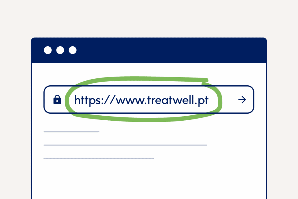 Se tiveres dúvidas sobre se estás realmente a falar com alguém da Treatwell, podes pedir ao contacto para te enviar um e-mail de confirmação de um endereço oficial da Treatwell, que termina sempre em @treatwell.pt. Exemplos: @treatwell.com / @treatwell.pt.